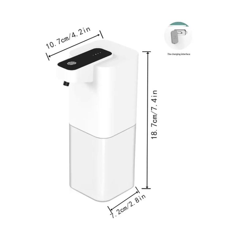 Есть четыре режима подачи пенки для вашего удобного использования. Встроенный аккумулятор и порт Type-C для зарядки обеспечивают удобство в эксплуатации. Кабель входить у комплект.Один раз заряжен, диспенсер работает 2-3 недели, в зависимости от частоты использования. Объем контейнера 400 мл позволяет вам не часто доливать мыло. Это идеальный сенсорный диспенсер для жидкого мыла, который делает процесс гигиены простым и удобным.