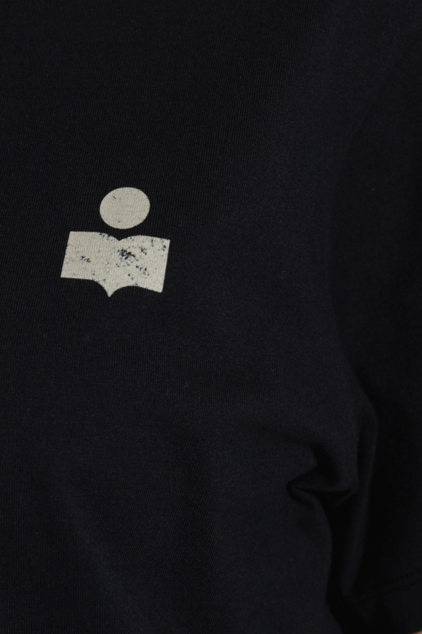 Black ‘Zewel’ crewneck T-shirt from Isabel Marant Etoile. Made from cotton, this style features short sleeves, an elasticated collar and a light grey logo print with a vintage effect on the front and back.