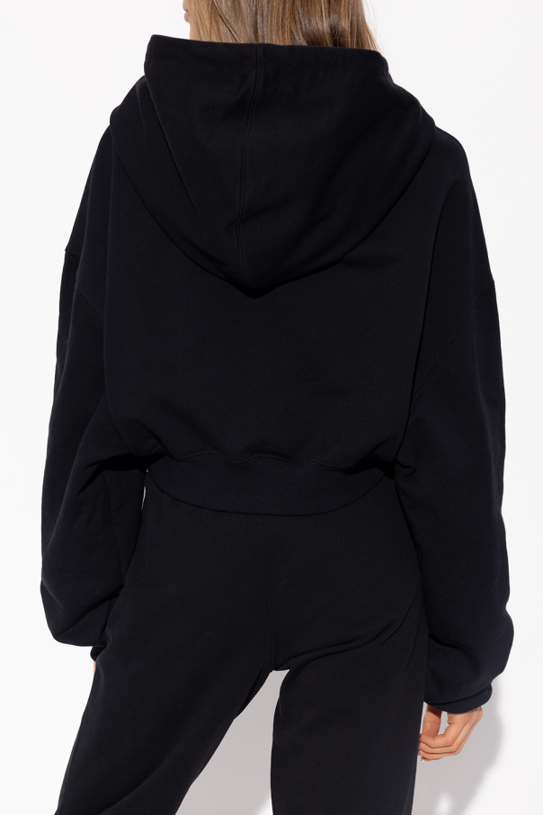 Black sweatshirt with a drawstring hood from Off-White. Made of cotton with a cropped, oversize fit, this style features white logo embroidery on the front and elasticized trims on the bottom hem and cuffs.