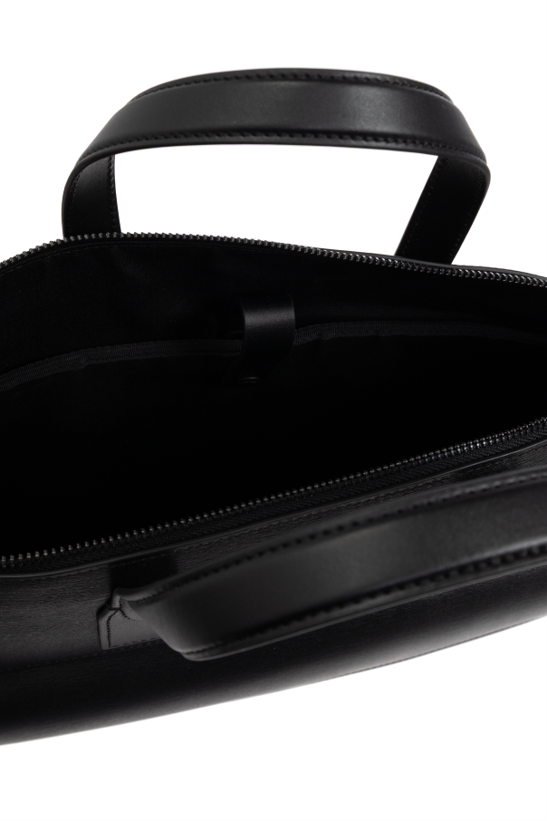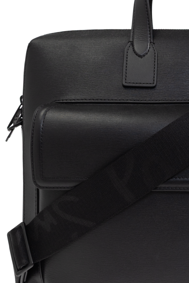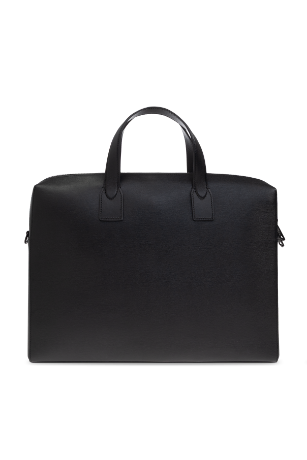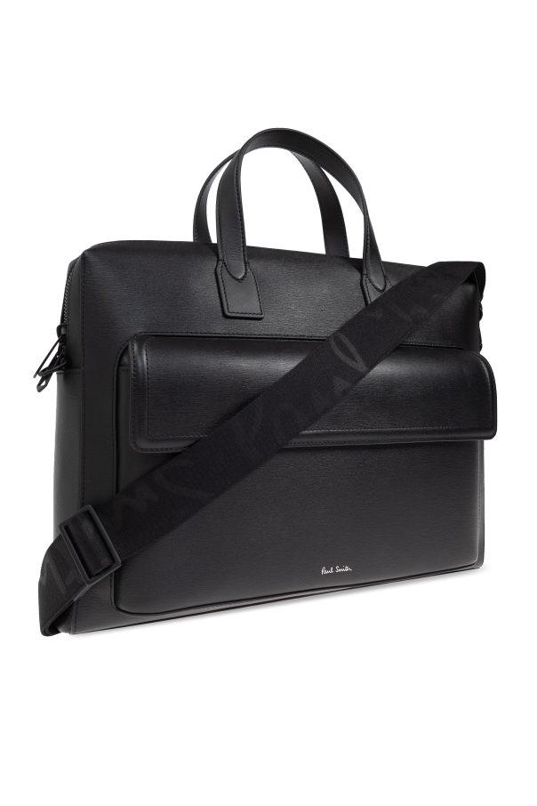 Introducing the Handheld Bag from the exclusive collection by the legendary designer, Paul Smith. This masterpiece is crafted from smooth, high-quality black leather, exuding an air of elegance and professionalism. The bag\'s rectangular, classic shape is enhanced by two sturdy hand-carry handles and a detachable, adjustable shoulder strap with a subtle pattern, adding a touch of versatility. The front features a large zipped pocket, ideal for quick access to essentials, while the discreet designer logo graces the exterior, a hallmark of luxury brands. The dual-zip closure unveils a spacious interior, meticulously finished to accommodate documents and daily necessities with style. Why choose this product? Exquisite Craftsmanship: Made from premium leather for a luxurious feel. Versatile Design: Offers both hand-carry and shoulder-carry options. Spacious Interior: Ample room for documents and essentials. Signature Style: Features the distinctive Paul Smith branding.