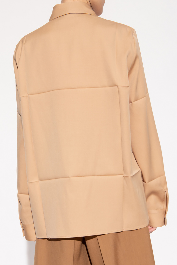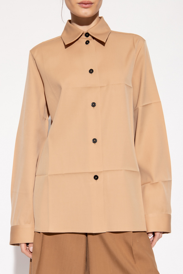 Beige shirt from Jil Sander. Crafted from wool gabardine with a creased effect, this style features a relaxed silhouette, button fastenings and long sleeves with button cuffs.