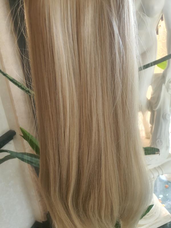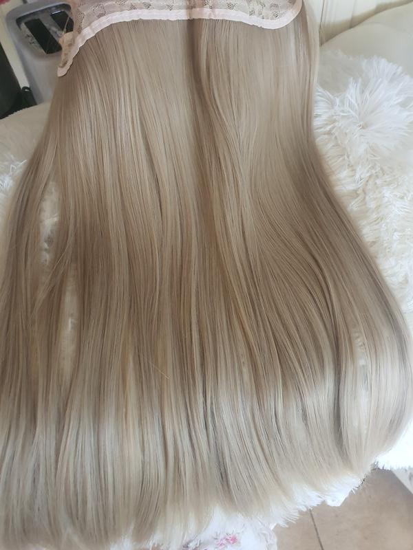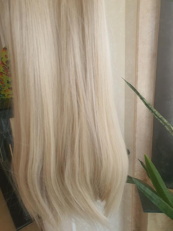Тресс очень шикарного качества, можно мыть, крутить, выравнивать утюжком . Не отличается от натуральных вообще. Нет блеска и не путается. Покупала дорого, очень удобно носить. Длина 43 см. но получаются почти до талии т.к. одевается в самом низу головы, под ваши волосы. Новые, не подошел цвет. Сделала много фото чтоб вы видели цвет его. 700 грн.
