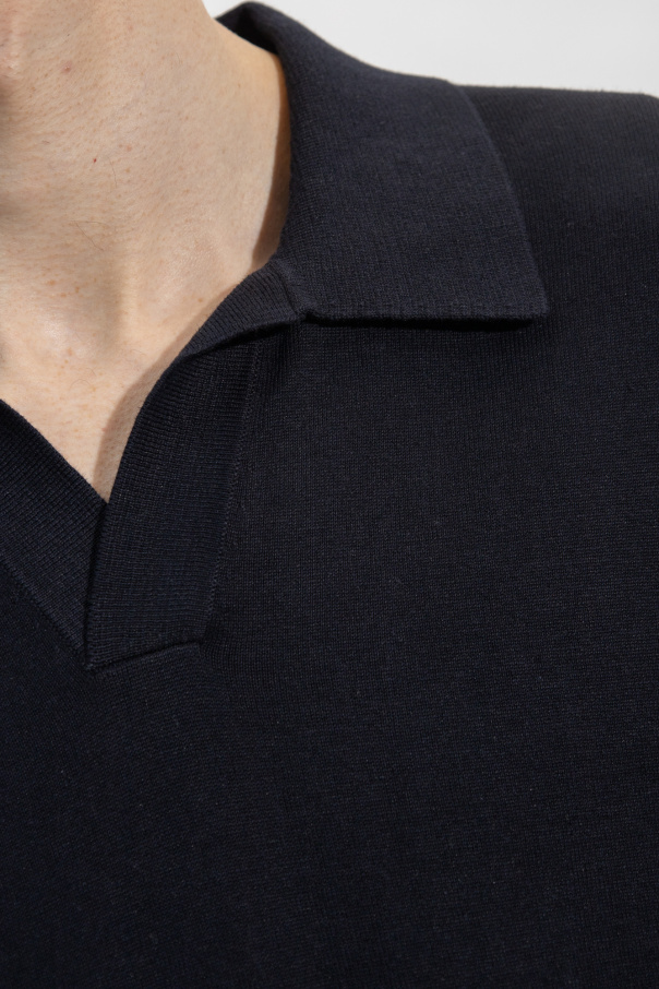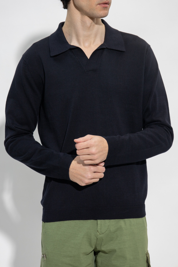Navy ‘Leif’ polo shirt from Norse Projects. Crafted from a linen and cotton blend, this long sleeve design features ribbed trims at the hem and cuffs.