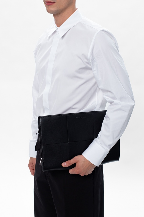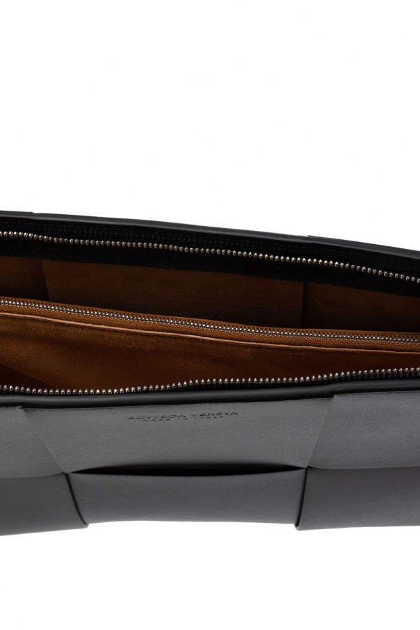 Black document case from Bottega Veneta. Rendered in maxi ‘Intrecciato’ calf leather, this style fastens via zip and employs silver-tone metal hardware and brown clad interior with one compartment and one zip pocket.
