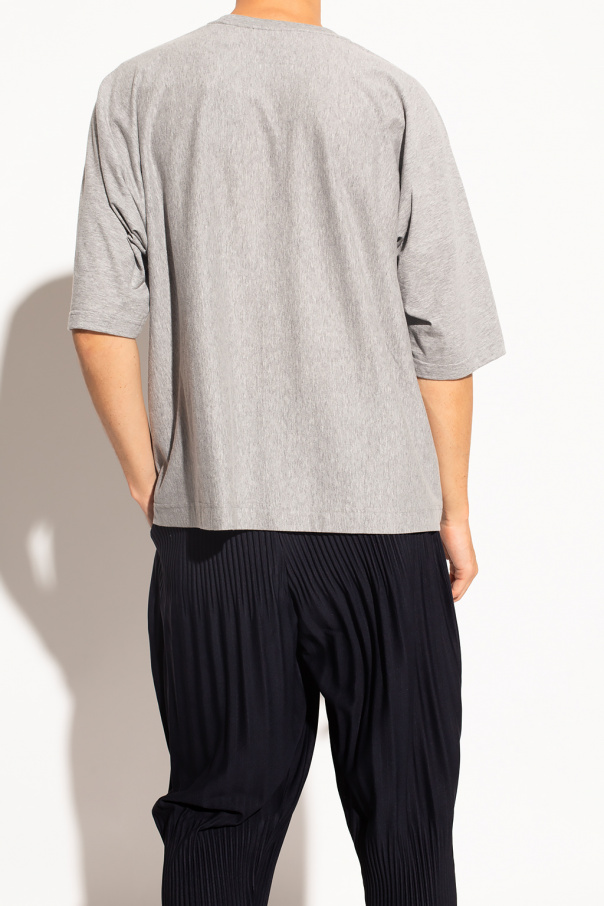 Grey T-shirt from Issey Miyake Homme Plisse. Made of cotton, this short sleeve design features a ribbed round neck.