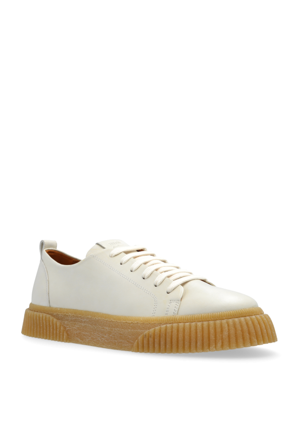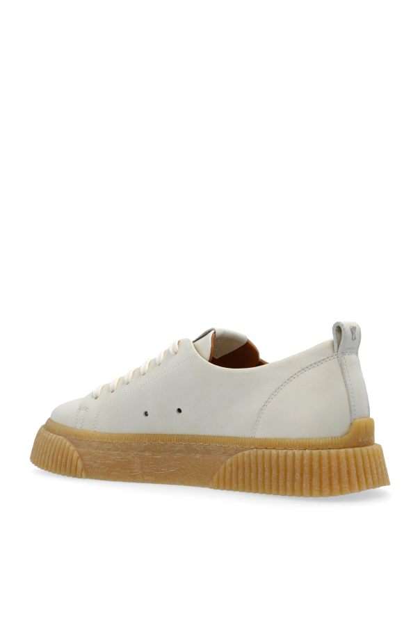 Introducing the Men\'s Low-Profile Sneakers by Ami Alexandre Mattiussi, a quintessential blend of elegance and modernity. These cream-colored sneakers epitomize understated sophistication and versatility, making them an indispensable addition to any wardrobe. Crafted with meticulous attention to detail, the shoes feature a classic low profile with a rounded toe, exuding a minimalist charm. The upper, made from premium cream leather, offers an exclusive touch, while the honey-colored rubber sole with a pronounced ribbed pattern ensures exceptional grip and cushioning. The sneakers boast subtle branding with a debossed \"ami\" logo on the leather tongue, small side ventilation holes for enhanced airflow, and matching cream laces that seamlessly blend with the chic upper. Additionally, a rear pull tab facilitates easy wear, enhancing practicality without compromising style. Inside, a soft lining promises unparalleled comfort, making these sneakers perfect for both casual and refined ensembles. Why Choose These Sneakers? Timeless design with a modern twist Luxurious cream leather upper Honey-colored rubber sole for superior traction Subtle and elegant branding Versatile enough for various styles