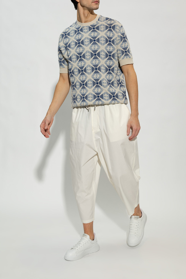 White sneakers from Emporio Armani. Crafted from grained leather, this lace-up model sits on a white rubber sole and showcases a monogram motif and a branded tongue patch.