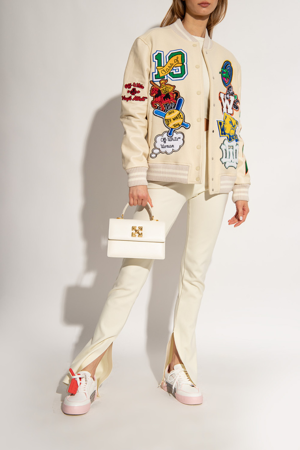 White and pink ‘Low Vulcanized’ sneakers from Off-White. Crafted from leather, this lace-up model sits on a white and pink rubber sole and showcases the ‘Arrows’ patch on the side, logo prints on the tongue and side, the brand\'s signature zip tie tag as well as a transparent grey insert and tactile stripes on the sole.