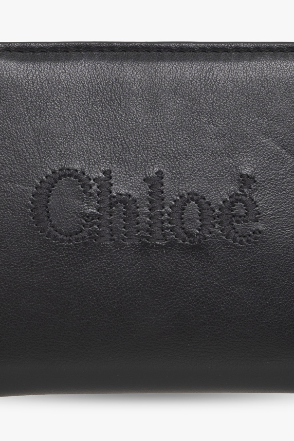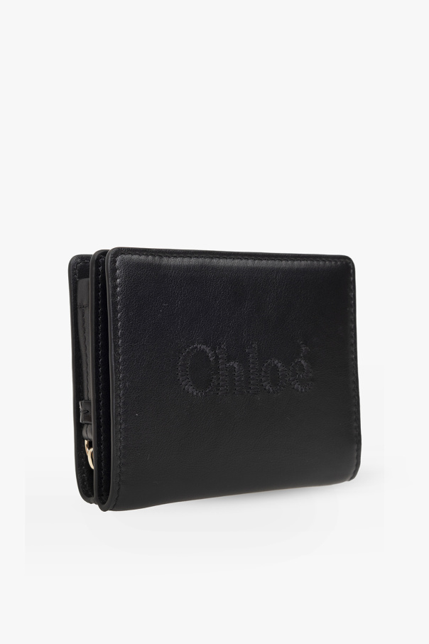Black ‘Chloé Sense’ wallet from Chloé. Crafted from calf leather, this model features a snap closure, logo embroidery, zipped coin pocket, light gold-tone metal hardware, bill compartment and eight card slots.