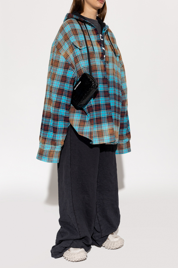 Beige and grey \'Bouncer\' sneakers from Balenciaga. Crafted from leather, this lace-up pair features mesh trims, a logo detail, vintage effect and grey chunky sole made of rubber.