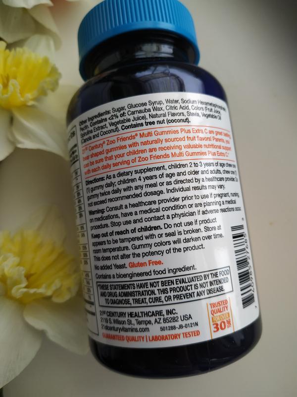 -Гарантована якість — продукт пройшов лабораторні випробування.🍓🍒🍐🍊🍇Мультивітамінна добавка Zoo Friends з додатковим вітаміном С від 21st Century перетворить прийом мультивітамінів на гру. Ці жувальні таблетки у вигляді ведмедиків мають чудовий смак натуральних фруктів! Батьки, ви можете бути впевнені, що ваші діти отримують необхідні поживні вітаміни з кожною щоденною порцією жувальних мультивітамінних таблеток Zoo Friends з додатковим вітаміном С.