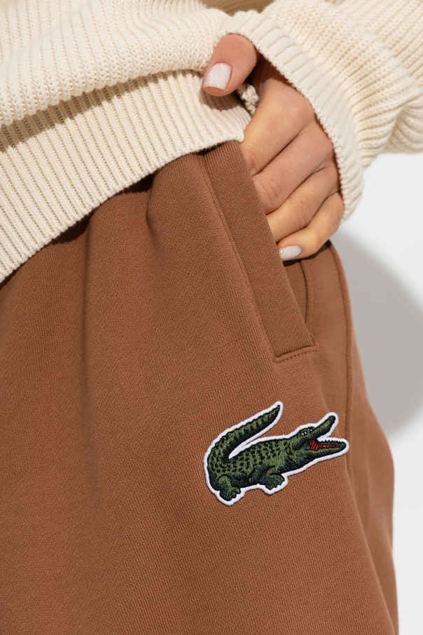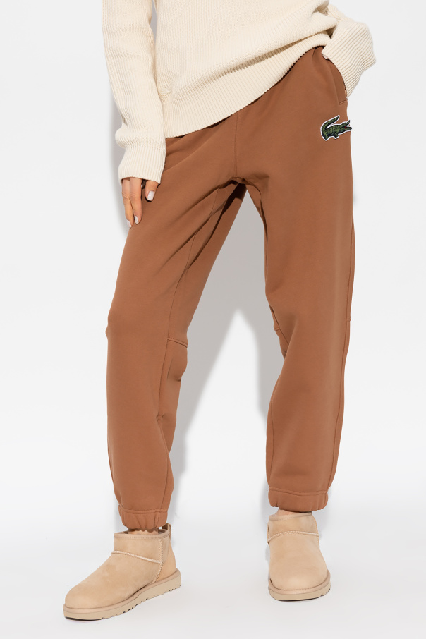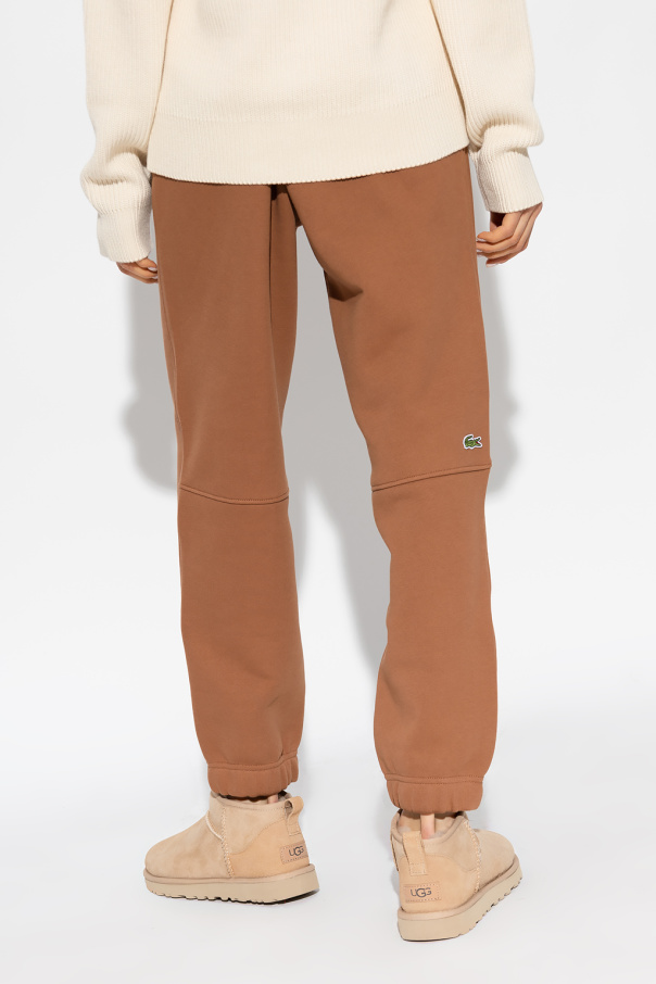 Brown sweatpants from Lacoste. Crafted from organic cotton, this pair is cinched with drawstrings at the waist and features a logo-shaped patch, three slip pockets and elasticated cuffs.