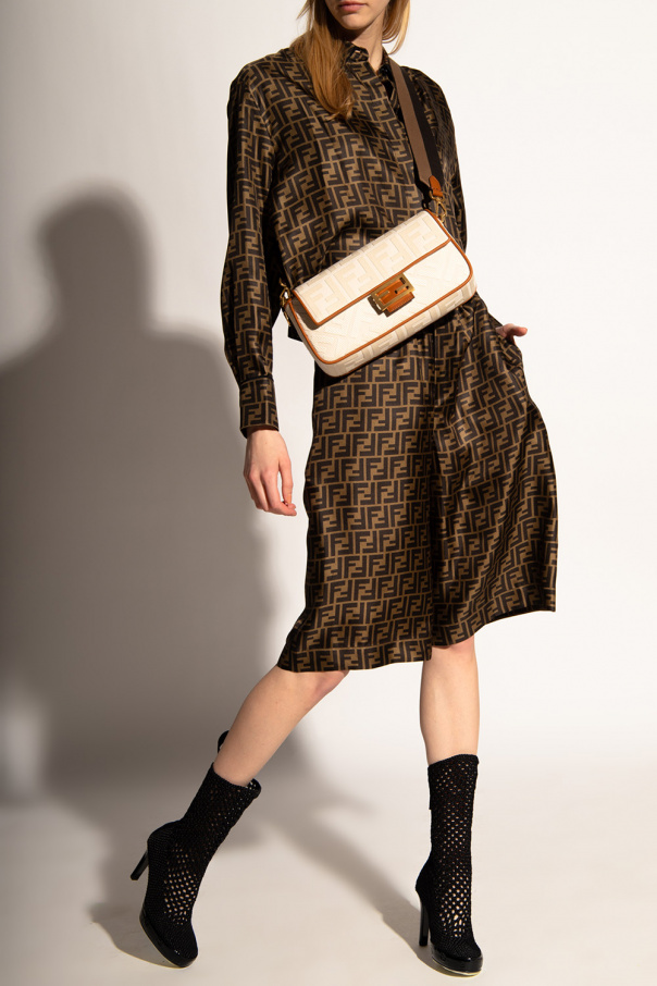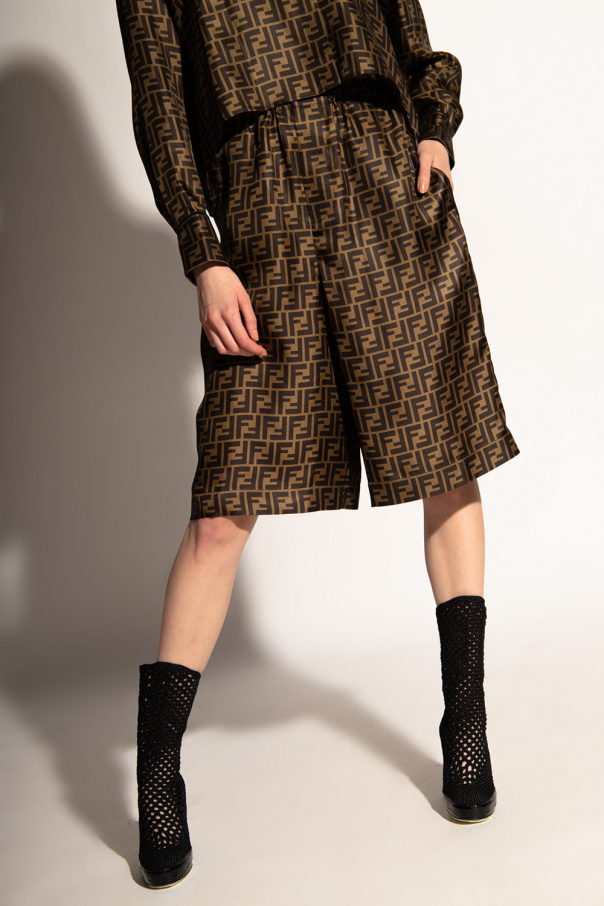 Beige and brown shorts with a logo from Fendi. Made of silk, this design features button fastenings and two pockets.