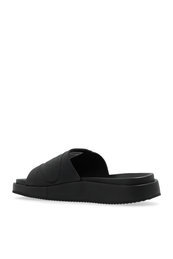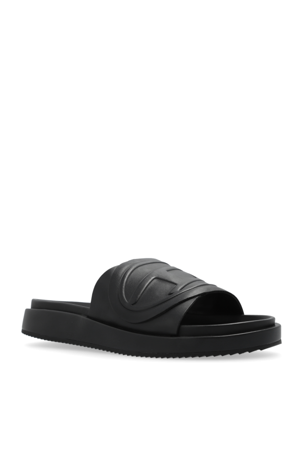 Black ‘SA-SLIDE D OVAL’ slides from Diesel. Made from faux leather, this model sits on a rubber sole and showcases a tactile logo on the front.