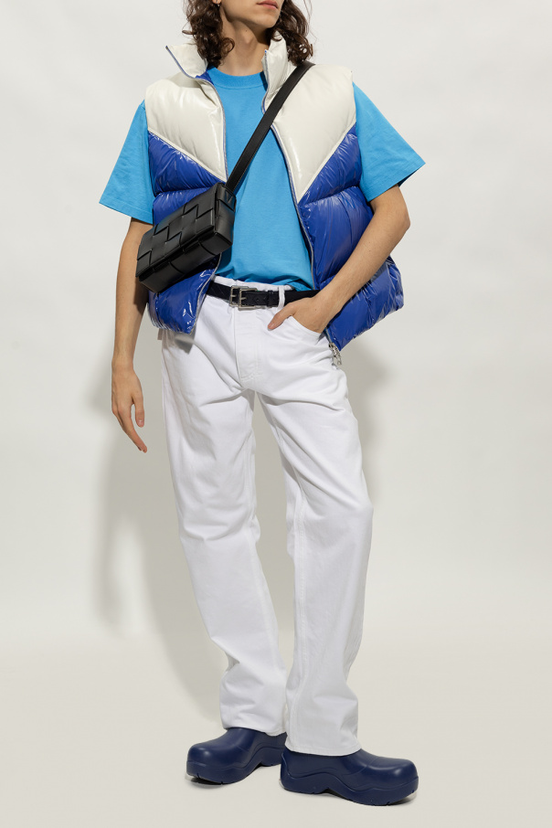 Navy ‘Puddle’ short rain boots from Bottega Veneta. Crafted from biodegradable materials, this seamless pair has cotton lining and navy rubber sole.