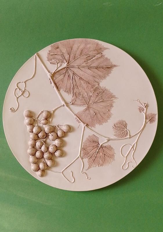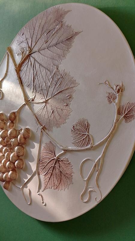 Панно на стіну з об'ємною гілкою винограду. Панно з гіпсу, підійде для будь-якого інтер'єру. Діаметр 29,5 см, товщина 1,4 см.