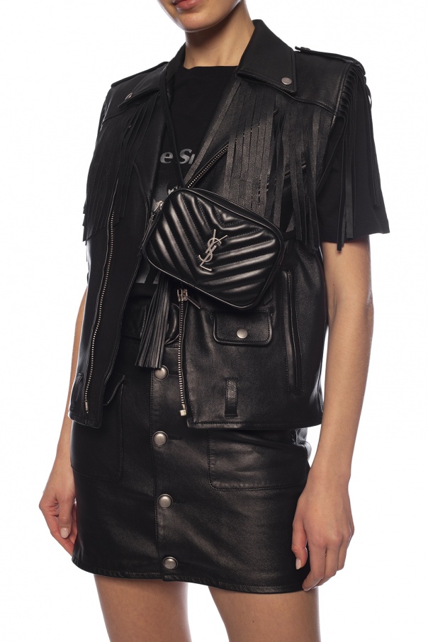 Black ‘Lou’ quilted belt bag from Saint Laurent. Crafted from calf leather, this design fastens via zip closure and showcases silver-tone metal hardware, including YSL initials, an external zipped pocket on the back, a detachable and adjustable strap and interior with one compartment, one slip pocket and three card slots.