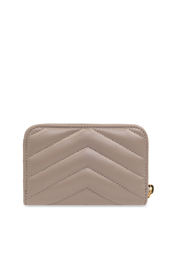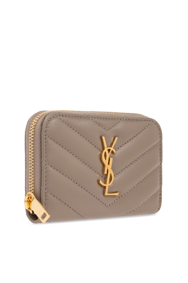 Introducing the epitome of sophistication and functionality - the Beige Leather Wallet from the exclusive collection of Saint Laurent. Crafted from the finest leather, this wallet exudes a timeless elegance and durability that stands the test of time. Its dominant beige hue is complemented by a quilted chevron texture, gracefully presenting a classic rectangular shape with softly rounded corners. The front of the wallet proudly showcases the iconic gold YSL logo, signaling its prestigious origin and adding a touch of luxury. A golden zipper contrasts beautifully with the beige leather, enhancing the wallet\'s luxurious appeal. The interior, revealed to be thoughtfully organized with multiple compartments, ensures practicality and ease of use. Notably, the \"SAINT LAURENT PARIS\" logo embossed on a black background within the wallet authenticates its distinguished lineage. Why Purchase This Product? Elegant design with a quilted chevron pattern and soft, rounded edges. Constructed from 100% high-quality leather for longevity. Features the iconic YSL logo and gold accents, adding a luxurious touch. Practicality ensured by a well-organized interior with three pockets and a zipper closure that runs around the entirety. Authenticity confirmed by the \"SAINT LAURENT PARIS\" embossed logo.