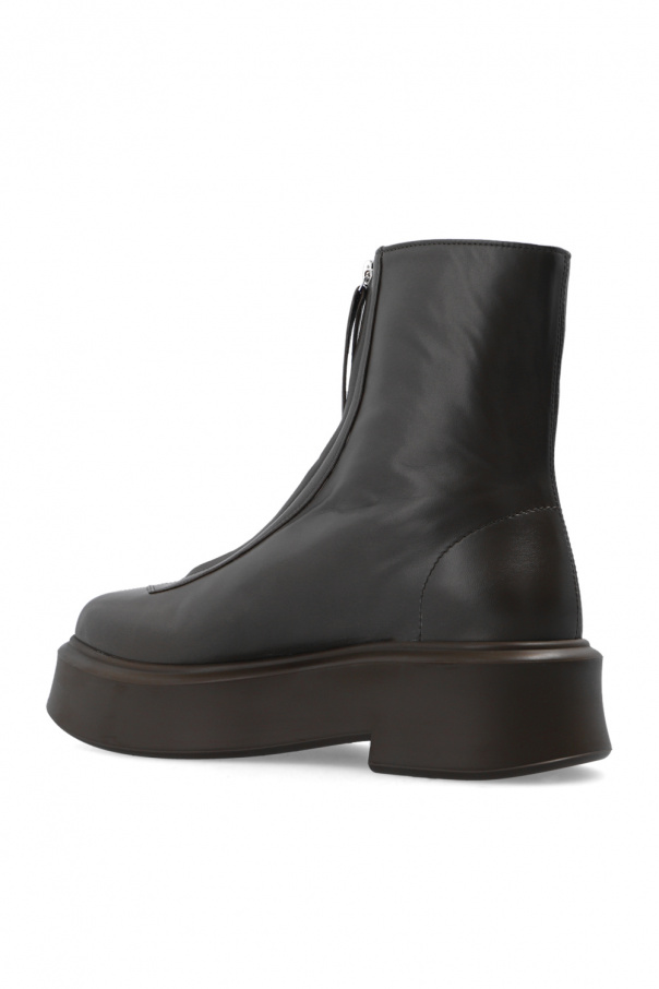 Dark green ‘Zipped’ ankle boots from The Row. Made of leather, this model features a front zip closure and a dark green rubber sole.
