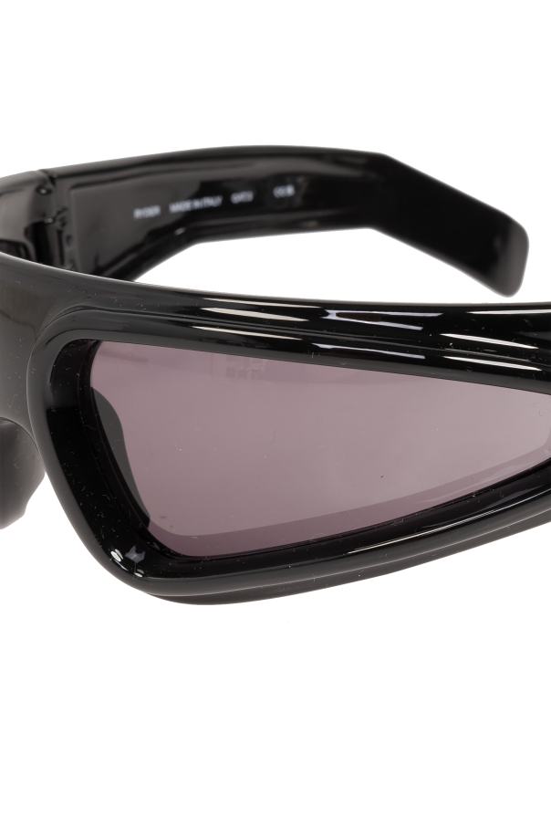 Introducing the Rick Owens Ryder Sunglasses, a paragon of modernity and resilience in eyewear design. Crafted meticulously from 100% nylon, these sunglasses boast a robust and substantial frame with distinct contours that embody a futuristic aesthetic. The large, wide lenses, tinted in a subtle gray, offer not only a bold visual statement but also paramount UV protection, safeguarding the eyes against the sun\'s harmful rays. The Ryder sunglasses are distinguished by their wide temples, which snugly embrace the sides of the head, ensuring superior stabilization and comfort during wear. This feature, coupled with the glasses\' considerable proportions as observed on a human model, accentuates their modern and possibly sporty appeal. Accompanying the sunglasses is a soft, rounded, black case designed to contour perfectly to the Ryder\'s shape, providing optimal protection when the glasses are not in use. Despite the absence of overt branding or logos, the meticulous craftsmanship and design details, such as the hinges visible in close-up shots, signify the quality and exclusivity associated with the Rick Owens name. Why Choose the Ryder Sunglasses? Futuristic and solid design that complements both sporty and modern styles. Wide temples for enhanced stability and comfort. Subtle gray, UV-protective lenses for optimal eye safety. Comes with a specially designed, protective case. Exquisite craftsmanship devoid of overt branding, for those who appreciate understated luxury.