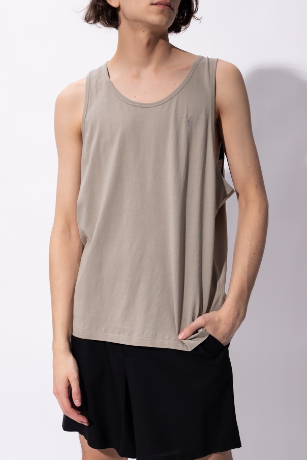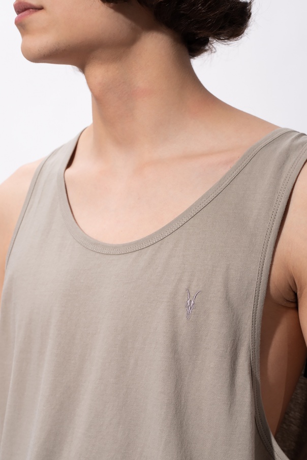 Begie ‘Tonic’ tank top from AllSaints. Crafted from cotton, this item features an elasticated collar and an embroidered grey Ramskull logo.