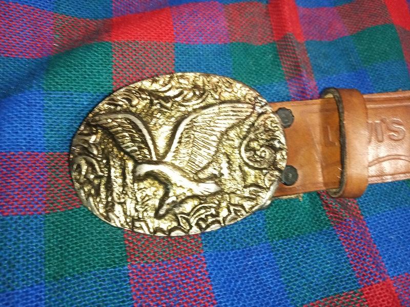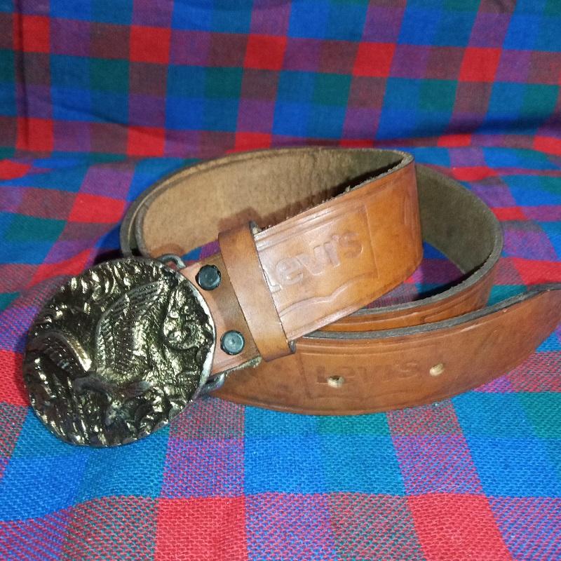 Ремень кожаный тисненый с литой бляхой винтажный