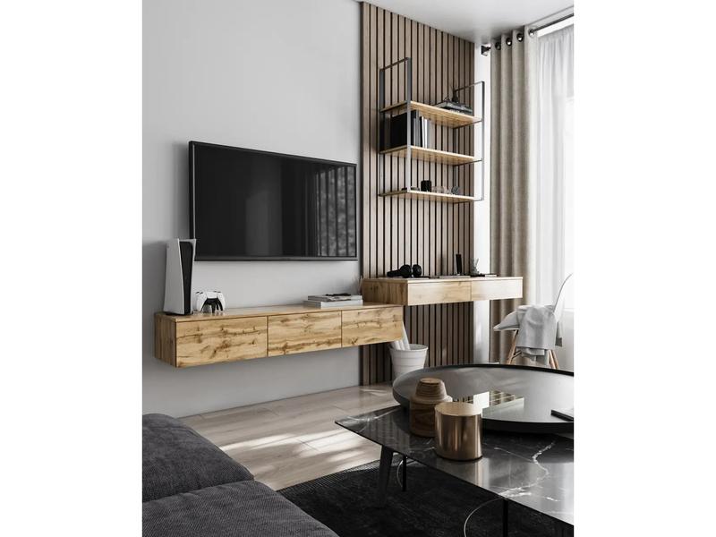 Підвісна тумба під телевізор з трьома висувними ящиками –
