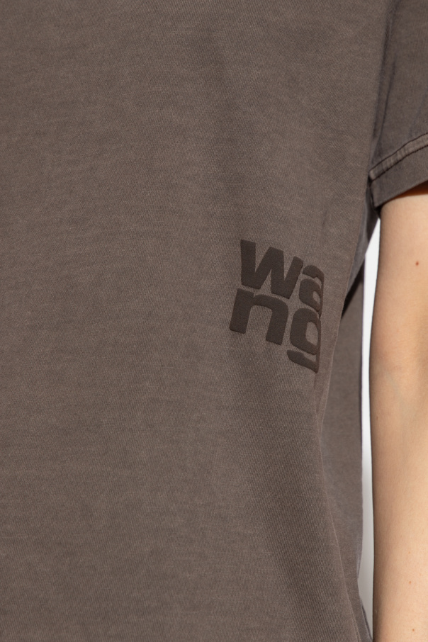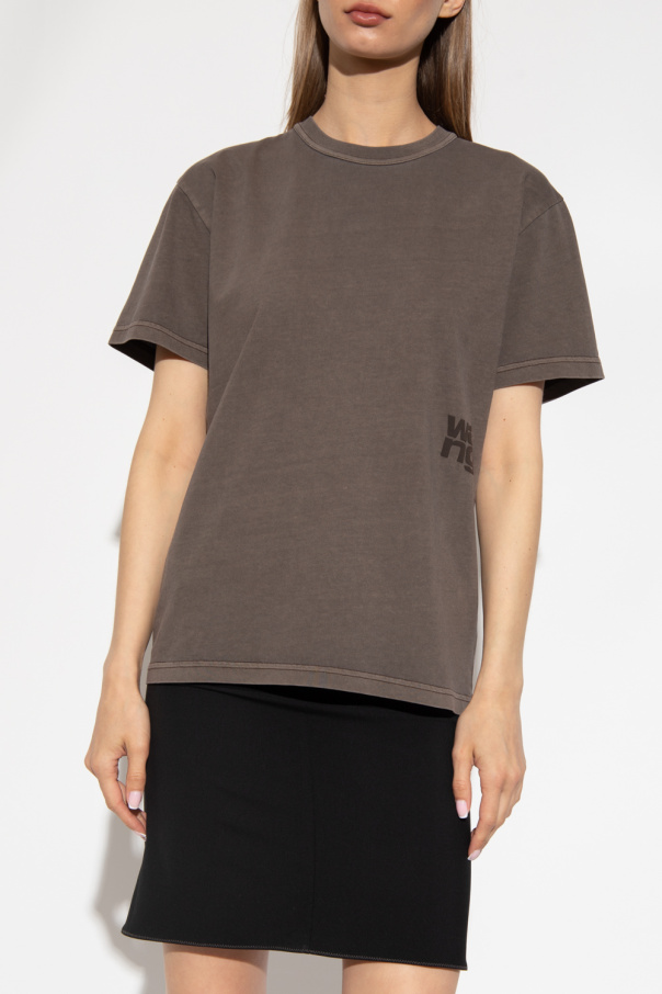 Brown crewneck T-shirt from Alexander Wang. Made of cotton, this style features short sleeves and the designer\'s logo printed on the front.