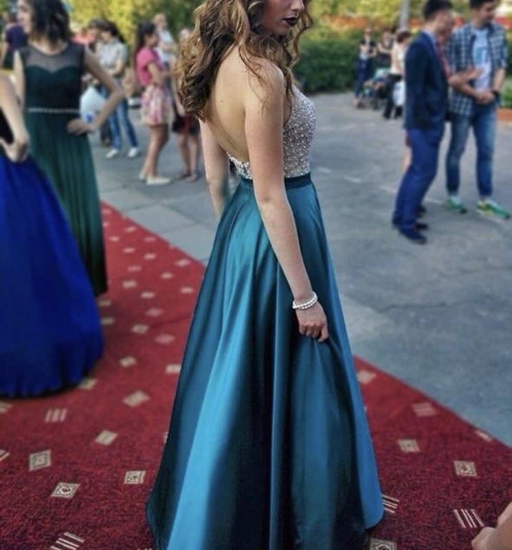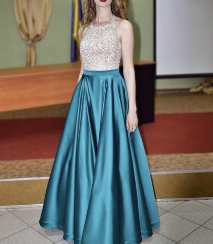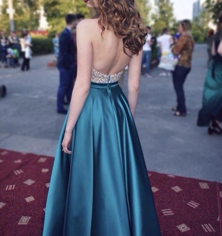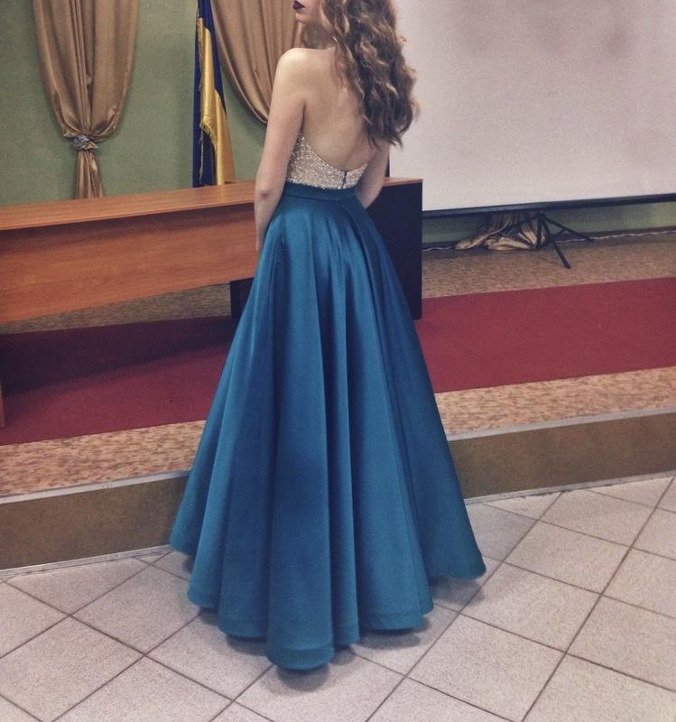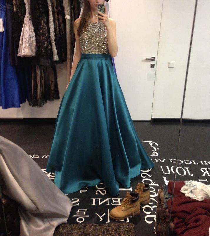 Неймовірна шикарна сукня, підійде на випускний, пишна, відкрита спина, верх повністю ручна робота, є два підюбники шовковий та з сітки. Колір синьо-зелений, під різним освітленням переливається як морська хвиля. На розмір S-M, мій зріст 180, параметри: груди на розмір 44-46, пів обхват талії 40 см, довжина від поясу до полу 117 см, з поясом 120 см, від верху до поясу 32 см, усі деталі в приватні. Сукня одягалось один раз, після хімчистки. Можливо підʼїхати поміряти Софіївська Борщагівка.
