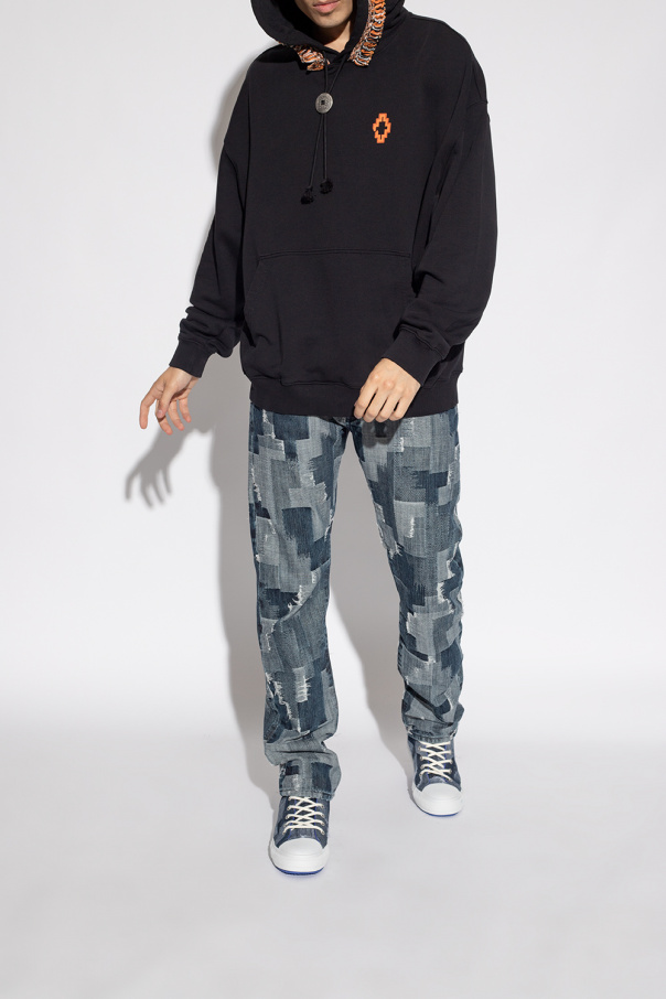 Navy blue and white ‘All Over’ sneakers from Marcelo Burlon. Crafted from cotton with a high-top silhouette, this lace-up model sits on a white rubber sole and features an embossed logo at the back.
