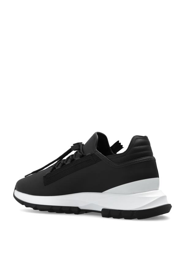 Black and white ‘Spectre Runner’ sneakers from Givenchy. Made of leather, this lace-up model sits on a black and white rubber sole and showcases a printed logo and a side zip.