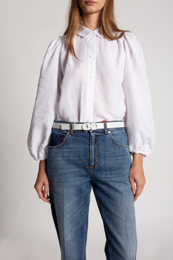 Grey belt from Salvatore Ferragamo. Crafted from calf leather, this item fastens with a logo buckle in grey and silver-tone.