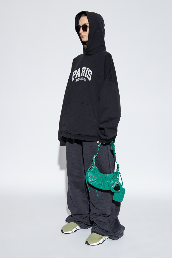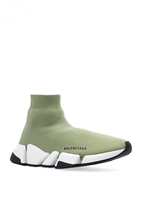 Green ‘Speed 2.0’ sock sneakers from Balenciaga. Resting on a black and white rubber sole, this pair is decorated with a black logo print.