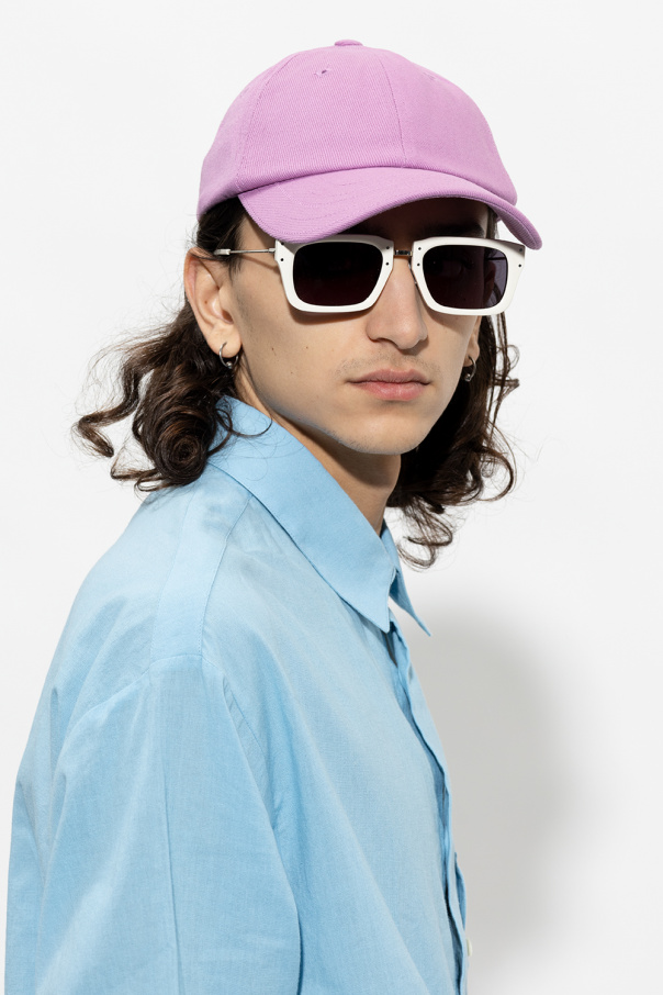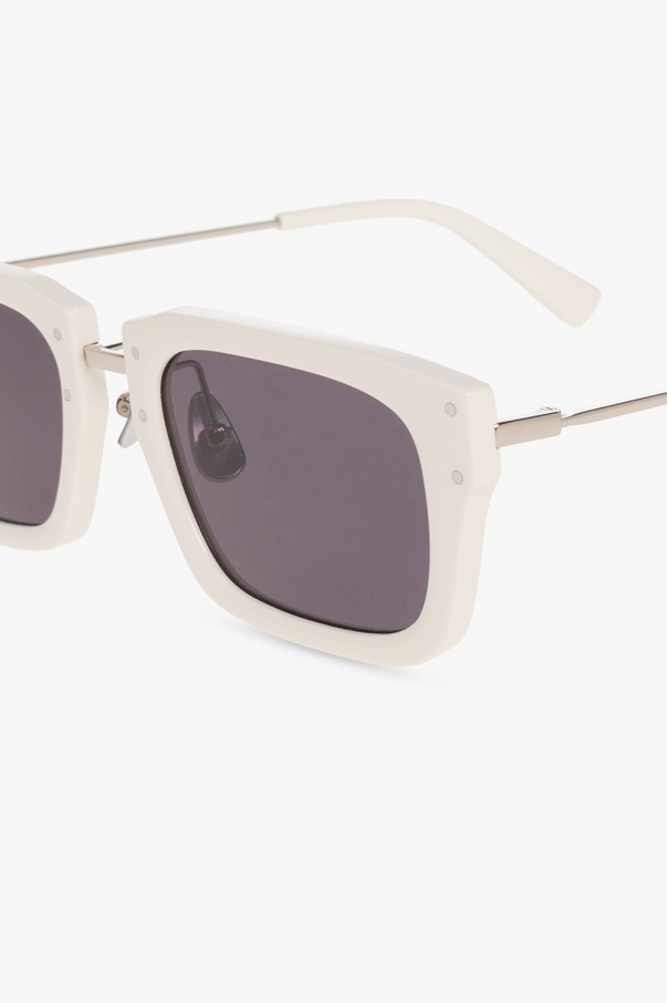 White and silver-tone ‘Soli’ sunglasses from Jacquemus. Crafted from acetate and stainless steel, this D-frame model features logo detailing on the temples, and grey lenses with 100% UV protection. Case included.