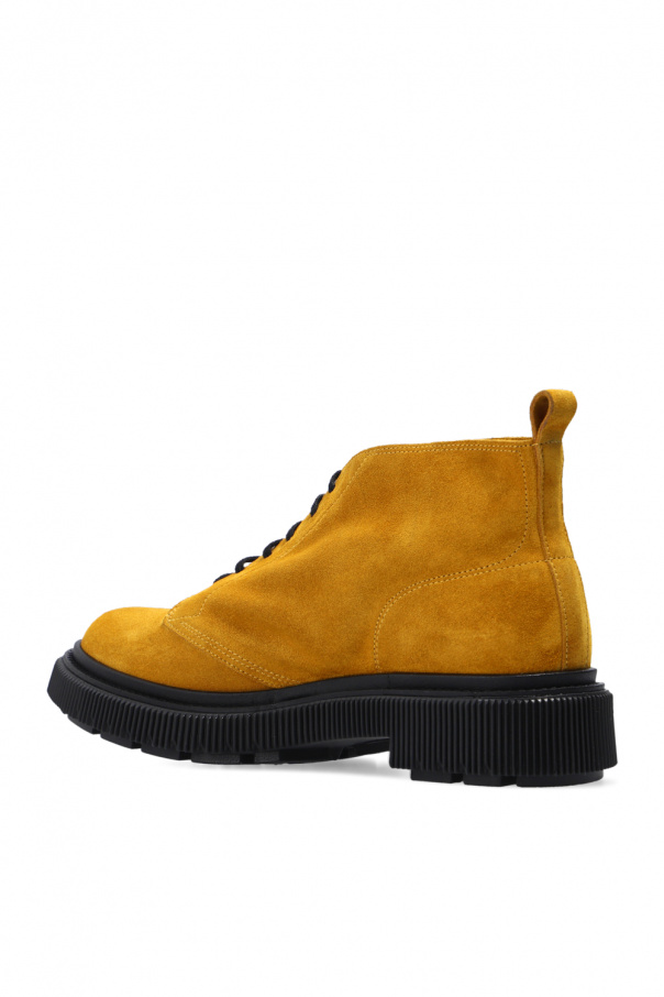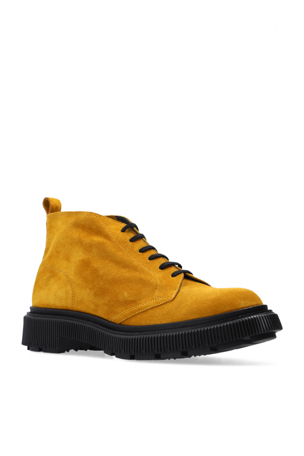Dark yellow and black ‘Type 121’ ankle boots from Adieu Paris. Crafted from suede, this lace-up model sits on a black rubber sole.