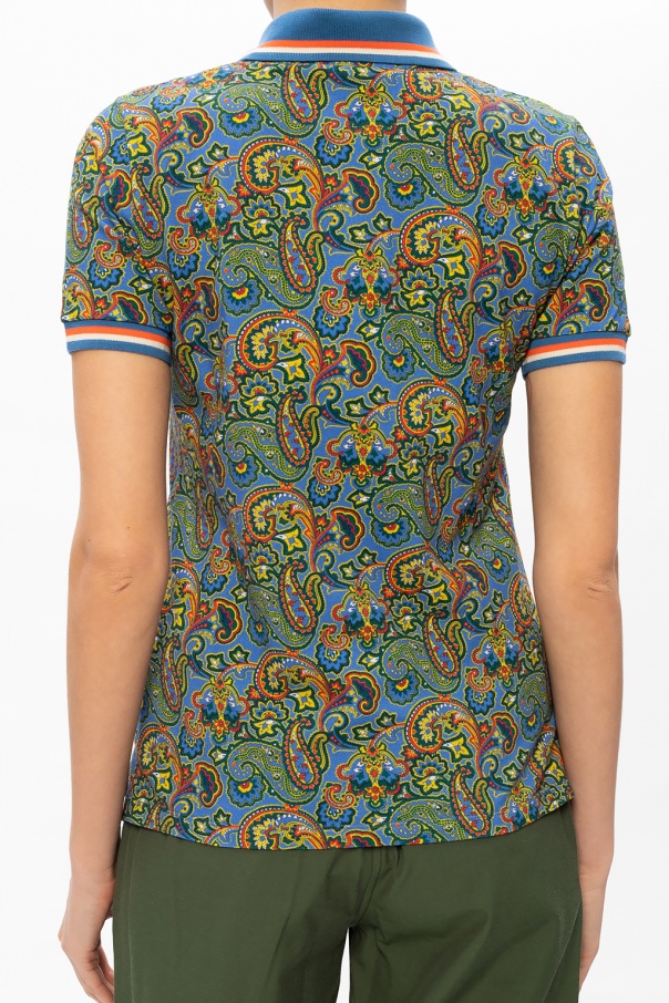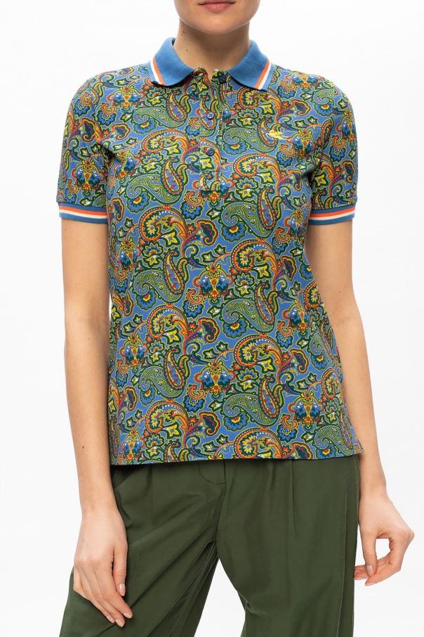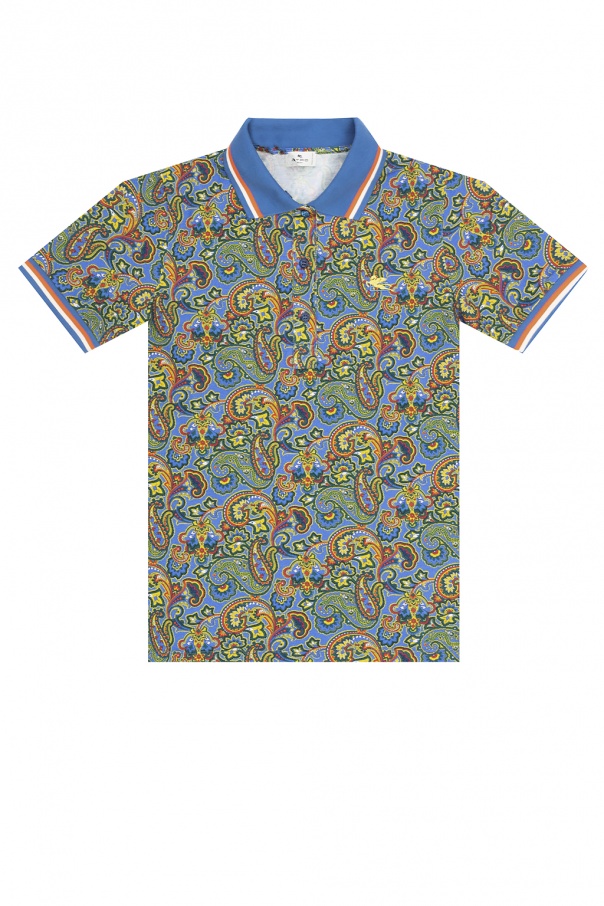 Multicolored patterned polo shirt from Etro. Made of cotton, this garment features button fastenings, yellow logo embroidery and short sleeves with ribbed cuffs.