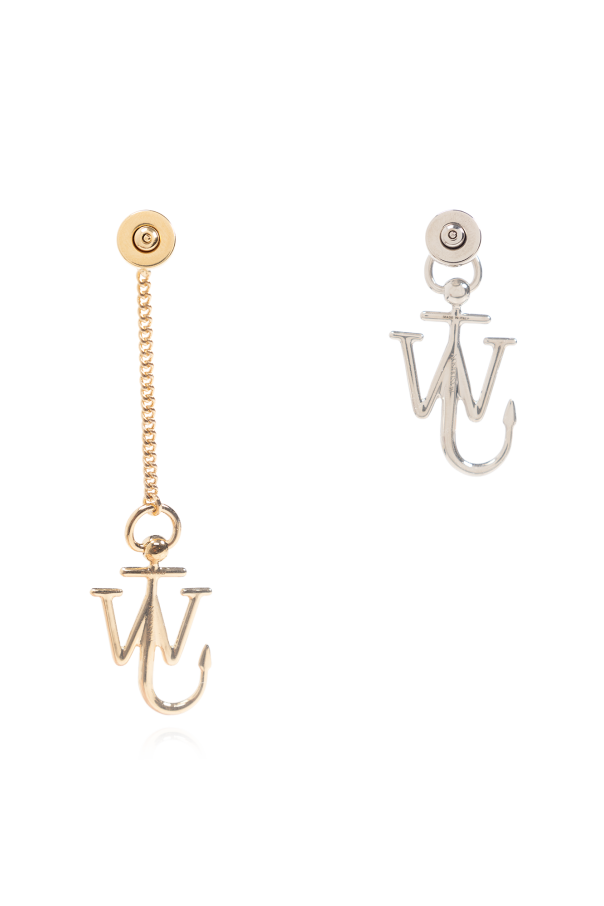 Gold-tone and silver-tone earrings from JW Anderson. Made of eco brass with an asymmetrical silhouette, they secure with push-back closures and showcase logo charms.