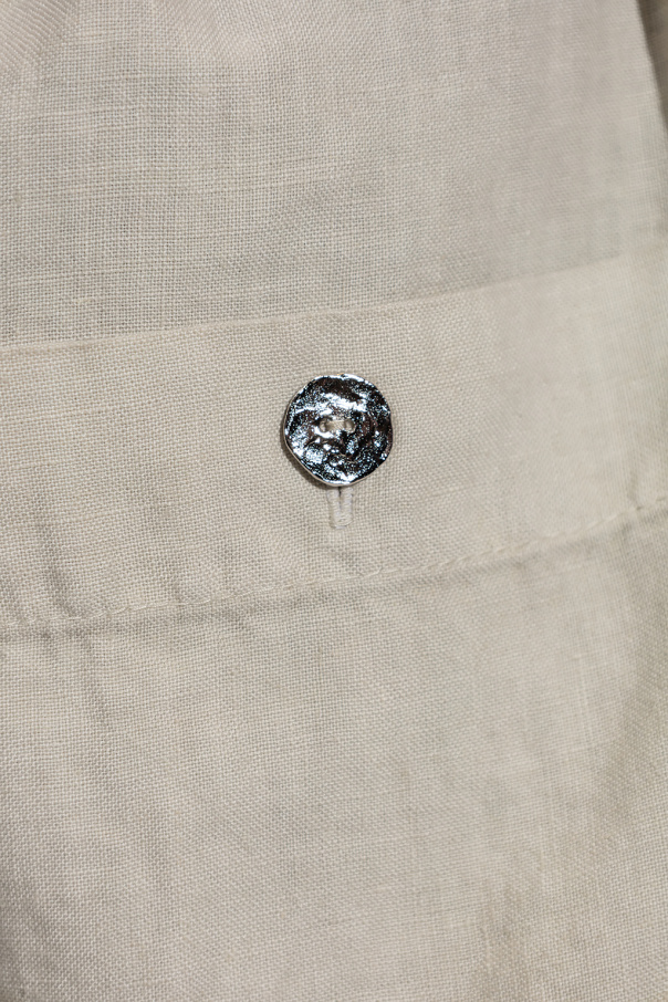 Light grey trousers from Nick Fouquet. Made of linen. Fastened with drawstrings, this design features two front pockets, one buttoned back pocket and tapered legs.