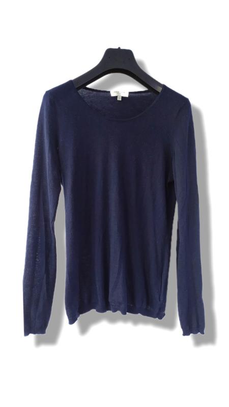Свитер джемпер из тончайшего кашемира/хлопка Eric Bompard. В очень хорошем состоянии, следы носки. Размер S. Темно-синий глубокий цвет.