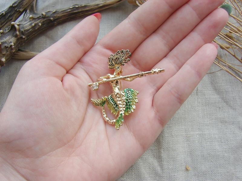 Высота броши 5 см. Крепится с помощью булавочной застежки.