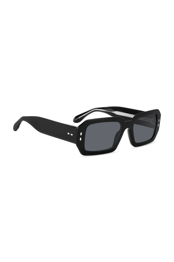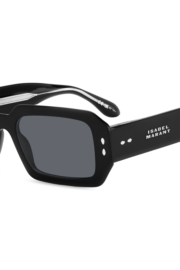 Introducing the quintessence of modern elegance and functionality - Isabel Marant\'s Rectangular Sunglasses. These sunglasses, with their dominant sleek black color and slightly rounded rectangular frames, embody a contemporary aesthetic that harmonizes with any attire. Crafted meticulously from 100% Acetate, these sunglasses assert a bold statement with their robust and wide frame design, a nod to the prevailing trend in eyewear. The dark grey lenses are not just a style statement but are engineered for superior protection against harmful UV rays, ensuring your eyes remain shielded in even the brightest conditions. Intricate silver details like rivets and screws accentuate the frames, blending aesthetic appeal with structural integrity. An unmistakable Isabel Marant logo on the temple adds a mark of exclusivity, telling a tale of luxury and impeccable taste. Why purchase this product? Iconic design with a modern twist, suitable for all occasions. High-quality Acetate construction ensures durability and comfort. Advanced UV protection to safeguard your eyes. Exquisite silver details and designer logo for an elevated style quotient. Part of an exclusive collection, reflecting superior craftsmanship and design ethos.