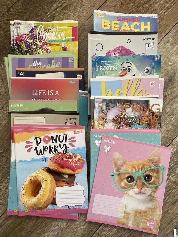 Зошити, нові. Є зошити на 12 і 18 аркушів, клітинка/лінія. Різні торгові марки: 1 вересня, kite, yes, зошит України. Є 1 зошит 1 вересня в косу лінію. Всі фото скину на запит, в обʼяві не всі.