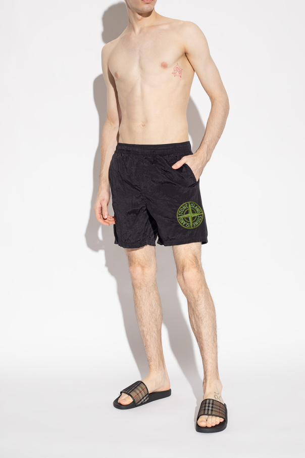 Black and beige slides from Burberry. Sitting on a black rubber sole, this model showcases an embossed logo and the brand\'s signature check motif.