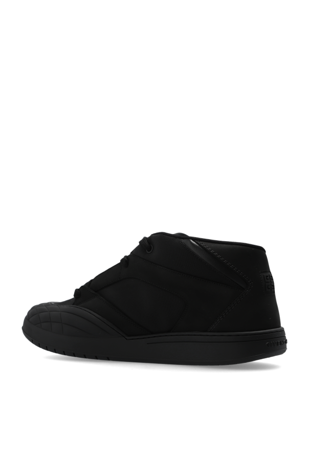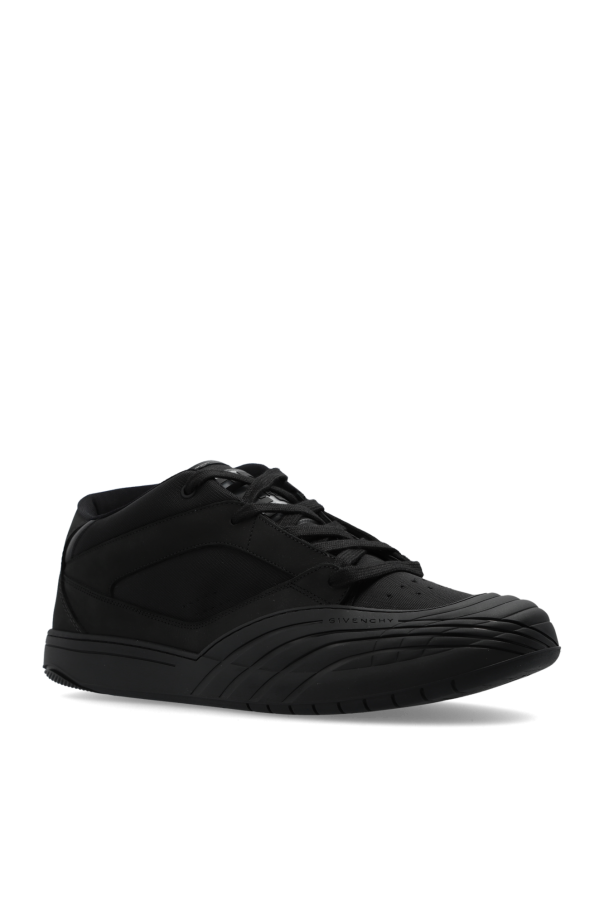 Introducing the Givenchy Skate Ankle Sport Shoes, a symbol of refined athleticism and understated luxury. Crafted with an eye for detail, these black sneakers offer a seamless blend of functionality and fashion. The outer layer of these distinguished shoes is fashioned from premium calf leather and high-grade polyamide, ensuring durability and a sleek finish. The interior, also lined with polyamide, guarantees comfort for the wearer, while the rubber sole provides steadfast grip and stability. Featuring rounded toes and a solid, flat black sole, these shoes maintain a cohesive color scheme that complements any attire. The surface is adorned with embossed lines adding texture and depth, and the matching black laces ensure a secure fit. An ankle-high design offers additional support, making these shoes a perfect blend of style and practicality. The designer\'s logo on the tongue signifies Givenchy\'s hallmark of quality. Why Purchase These Shoes? Universal Appeal: The black color and classic design effortlessly pair with various styles. Durability: Made with high-quality materials such as calf leather and polyamide, these shoes are built to last. Designer Touch: Givenchy\'s signature logo adds a layer of exclusivity and authenticity. Comfort & Support: The rubber sole and ankle-high design ensure comfort and support, making them ideal for extended wear.