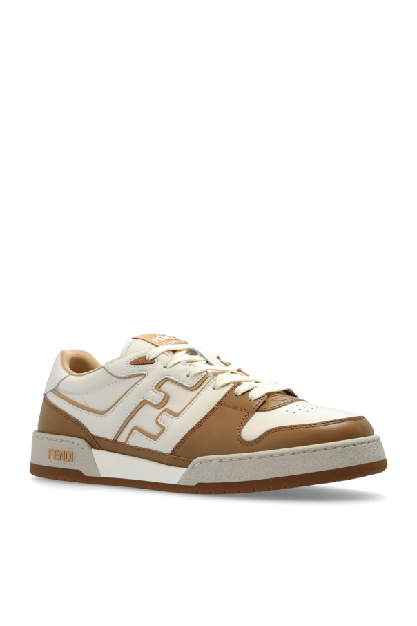 Introducing the \'Match\' men\'s sports shoes from the illustrious Fendi collection, a synthesis of luxury and everyday comfort. These ankle-high sneakers boast a dominant brown hue with subtle accents of cream and light brown, encapsulating elegance within a sporty design. Crafted with a blend of materials that exude the appearance of leather and suede, the \'Match\' shoes feature a low profile that speaks volumes of its refined craftsmanship. The outside of the shoe is adorned with the iconic large \"F\" letters, forming a distinctive pattern that is unmistakably Fendi. The brand\'s prestige is further highlighted by the \"FENDI\" inscription on the side of the sole, a hallmark of quality and recognition. The color palette of these sneakers is understated yet sophisticated, aligning with the discerning tastes of men who appreciate the fusion of luxury and functionality. Cream-colored laces complement the overall design, while the perforated front enhances breathability, ensuring a perfect blend of style and comfort. Made from the finest leather with a durable rubber sole and a comfortable interior fabric lining, these sneakers are a testament to Fendi\'s commitment to quality and attention to detail. The \'FF\' patches on the profile and the brown-beige-white color scheme of the sole add a touch of exclusivity to this exceptional footwear. Why Purchase This Product? Elegant design with subtle color accents for a refined appearance. High-quality materials including leather and rubber for durability and comfort. Distinctive Fendi branding elements for an exclusive touch. Perforated front for enhanced breathability. Ideal for men valuing luxury coupled with everyday practicality.