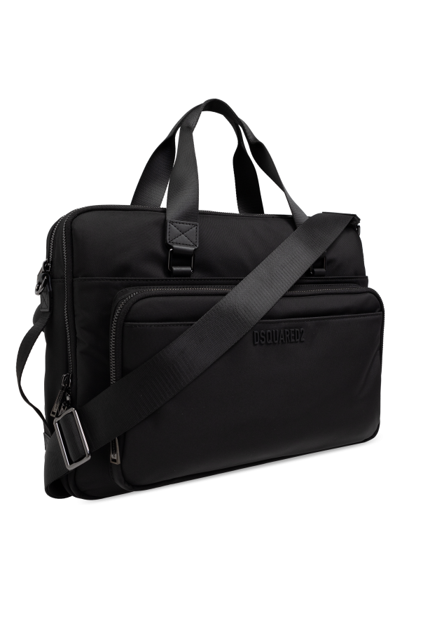 Discover the epitome of sophistication with the Dsquared2 Black Briefcase. Designed for the modern gentleman, this rectangular masterpiece boasts classic rounded edges and is crafted from resilient nylon, exuding a subtle sheen that speaks of understated elegance. Featuring two sturdy handles for hand-carrying and an adjustable, detachable shoulder strap, this briefcase offers versatile carry options. The front of the briefcase is adorned with a discreetly printed DSQUARED2 logo, adding a touch of luxury without overwhelming the sleek design. The large front pocket, secured with a zipper, provides practical storage for your essentials, while the main compartment, also zippered, ensures the safety of your valuable documents and items. Inside, you\'ll find multiple compartments and pockets designed to keep you organized, making this briefcase as functional as it is stylish. The back of the briefcase is equipped with two wide, adjustable straps, allowing it to transform into a backpack for added convenience. Each zipper is meticulously constructed to enhance the durability of this elegant accessory. Why Choose This Product? Timeless Design: Classic shape with rounded edges. Versatile Carrying Options: Handheld, shoulder strap, and backpack modes. High-Quality Material: Made from durable nylon with a smooth texture. Organized Interior: Multiple compartments and pockets for optimal organization. Subtle Branding: Discreet DSQUARED2 logo for a touch of luxury.