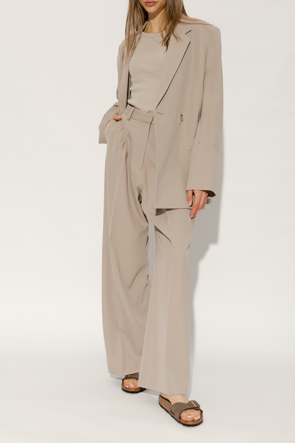 Brown ‘Madrid BS’ slides from Birkenstock. Crafted from skin-friendly Birko-Flor®, this pair is complete with an adjustable strap with a branded buckle as well as a brown sole made of cork and EVA.