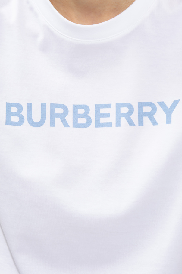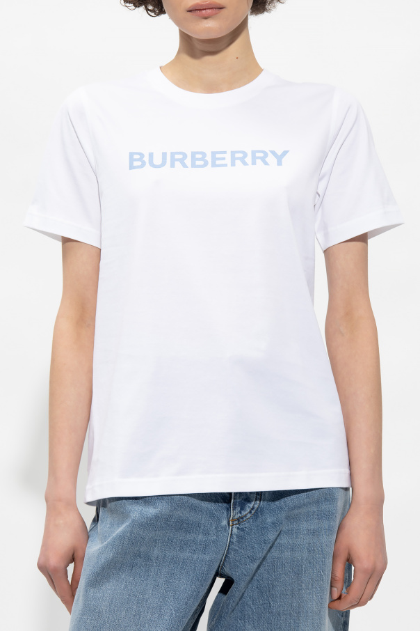 White ‘Margot’ T-shirt from Burberry. Made of organic cotton, this item features a light blue logo print, ribbed crew neck and short sleeves.