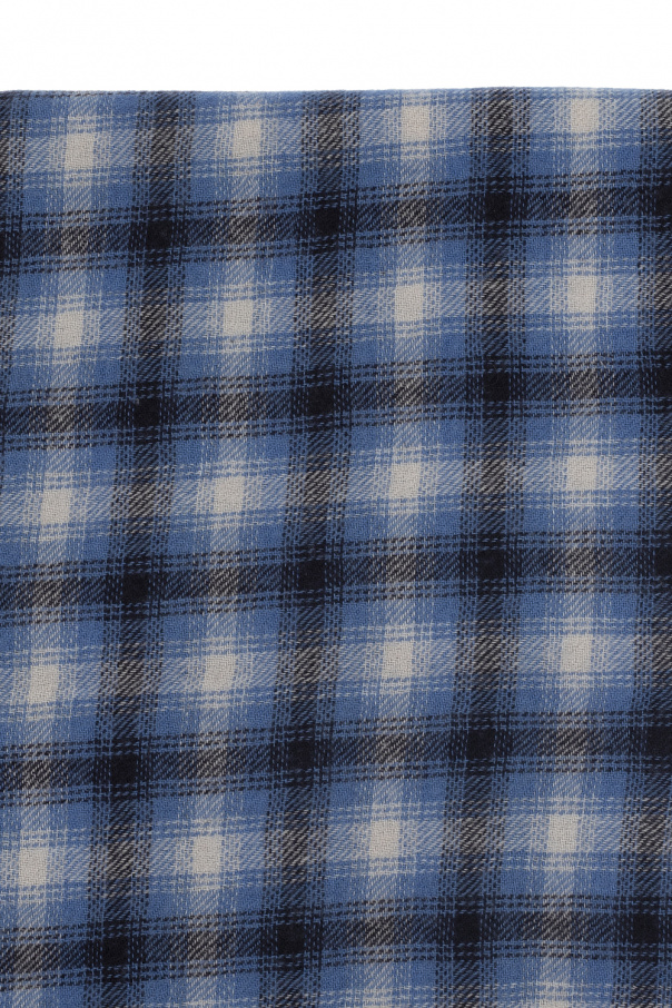 Blue, beige and black scarf from Isabel Marant. Made of a wool and cashmere blend, this design features a check pattern and short fringes.