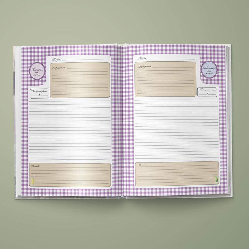 напитки и прочие.Практичная и удобная структура тетрадки высоко цениться кулинарами. Каждая страница имеет отдельные области для записи названия блюда, ингредиентов, которые входят в него и описание. Множество линеек позволит вам расписать все процессы пошагово, а также включить советы и нюансы приготовления. Данная кулинарная книга блокнот CookBook позволяет включить все и не упустить из виду важной информации. В дальнейшем вам будет удобно следовать детальному рецепту и в результате блюдо получиться вкусным, что порадеет вас, семью и приглашенных гостей.